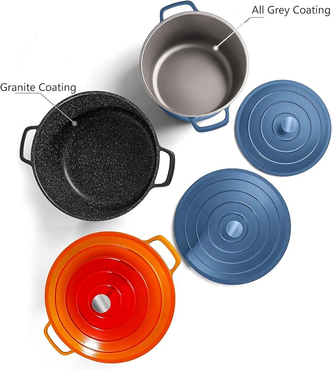 - Versatile and Multi-Purpose Cookware-This Cast aluminum dutch oven can meet all your cooking tasks, serving for dishes-from bread baking, braising to roasting. This is great for stir-fry, soups, stews and sauces as well. The functional all in one pan saves space, keeping the kitchen tidy.