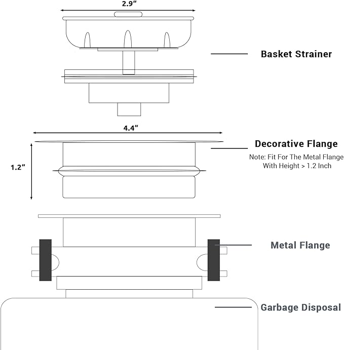 - 【Universal Design Compatibility】Designed to fit most US standard 3.5-inch garbage disposal metal collars, this garbage disposal flange strainer and stopper seamlessly integrates with your existing garbage disposal.