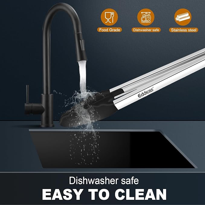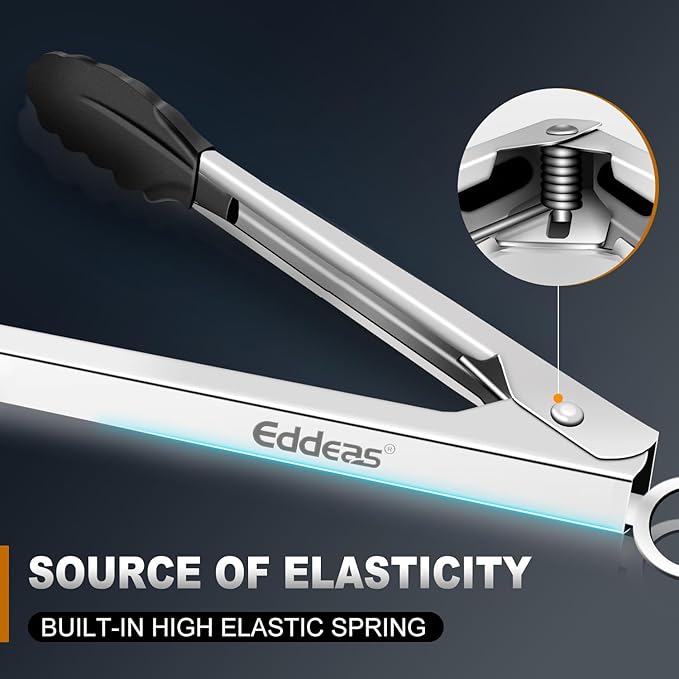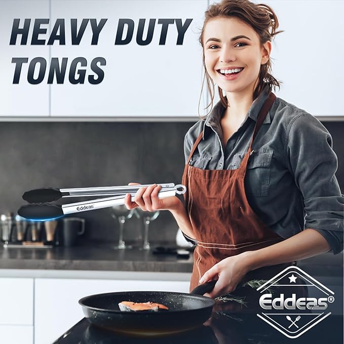 - FOOD GRADE STAINLESS STEEL & SILICONE - Eddeas tongs for cooking featuring a food grade silicone head, the tongs are gentle on your nonstick cookware so you can worry less about scratching and wear and tear, silicone is heat resistant up to 600 degrees Fahrenheit, making it a great option for nearly any cooking task.