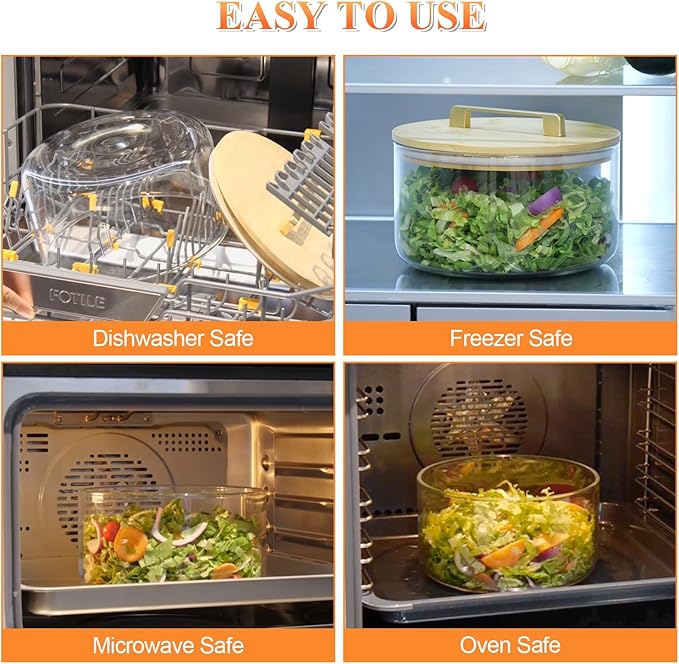 - Easy to Clean: With its smooth surface, this glass salad bowl is easy to clean. Rinse it under running water or put it in the dishwasher for a quick and convenient clean up after use. The natural bamboo lid can be gently machine-washed or hand-washed to maintain their natural beauty and prolong their lifespan.