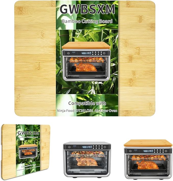 - Bamboo Cutting Board: Design for Ninja DT201 Foodi 10-in-1 XL Pro & DT251 Foodi 10-in-1 Smart Air Fry Digital Countertop Convection Toaster Oven(Not contain Oven). Protects cabinets from being damaged and protects family and pets from getting hurt by heat. Sits on oven steadily.The grip positions at both ends are convenient for grasping.