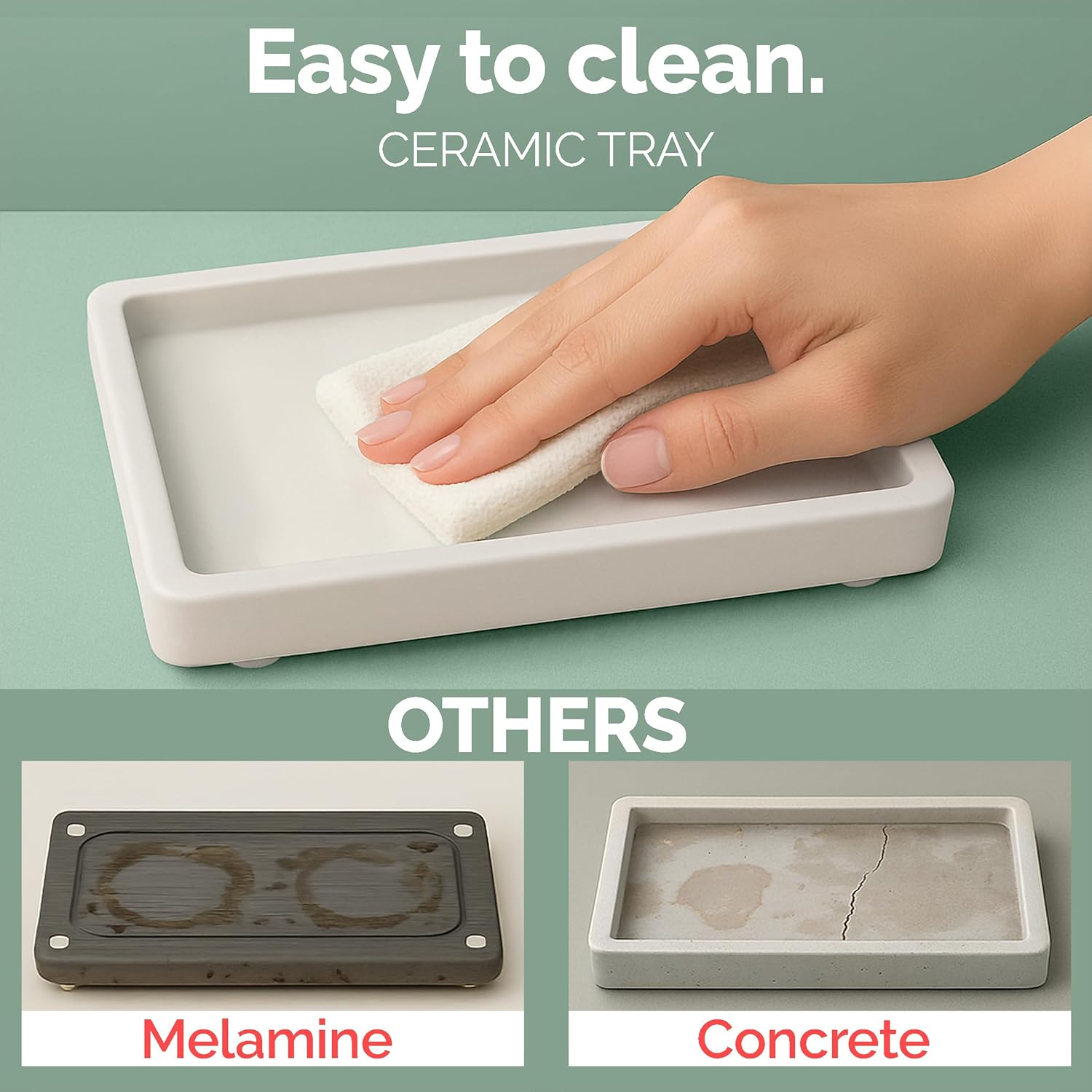 - STYLE YOU CAN FEEL – Heavier than standard dispensers, this hand and dish soap dispenser set of 2 brings substance and sophistication to your countertop. Built to last and made to impress—with a matching ceramic tray that keeps your set tidy, stylish, and perfectly organized.
