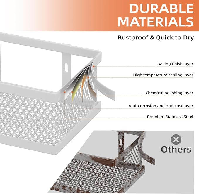 - Space-Saving and Organized Storage: Designed as a pantry door organizer and hanging storage baskets organizer, this wall mount rack maximizes space efficiency in any room. Keep your kitchen, pantry, bathroom, or shower clutter-free and organized.