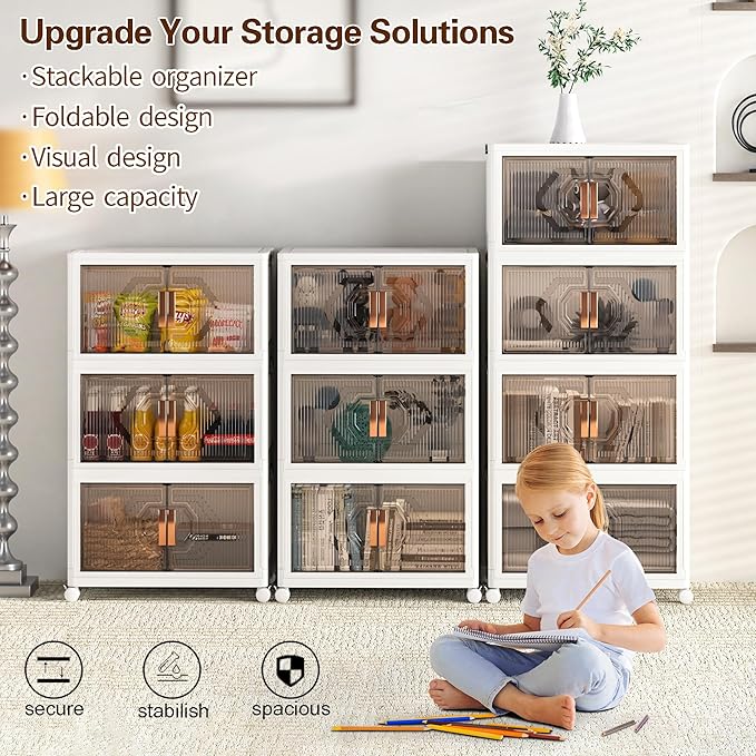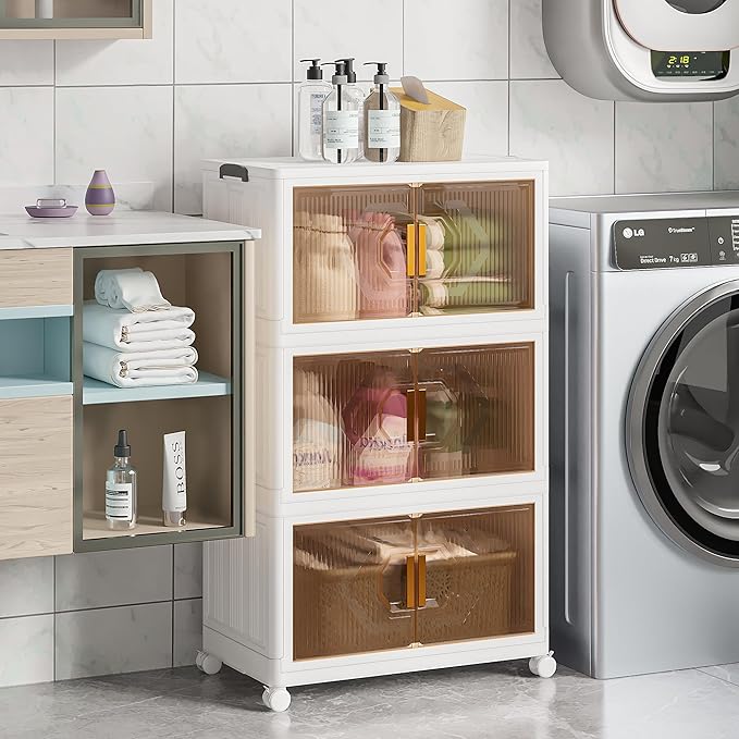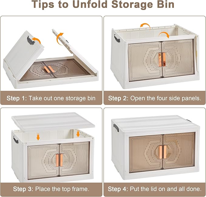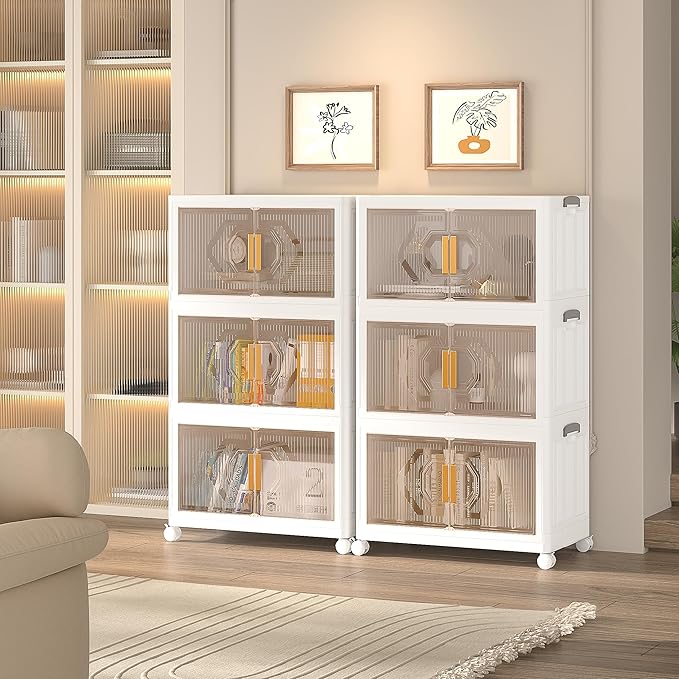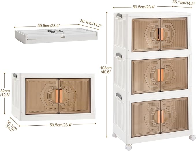- 【Two Opening Methods】The wheeled folding storage cabinet can be opened in two ways—either through the top lid or the front door. The magnetic lock dual-opening doors, coupled with transparent windows, facilitates easy organization and access while preventing dust. The charming rectangular door of the foldable storage box adds a modern and stylish touch to your home decor.