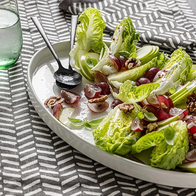 - MADE TO MATCH: This large oval serving platter is made with maximum color mix-and-matchability, so you can freestyle without all the fuss. Forget the rules – who needs ‘em. March to the beat of your inner entertainer. Elevate your home decor by adding this platter to a kitchen or dining room table, or use it to serve guests with signature style.
