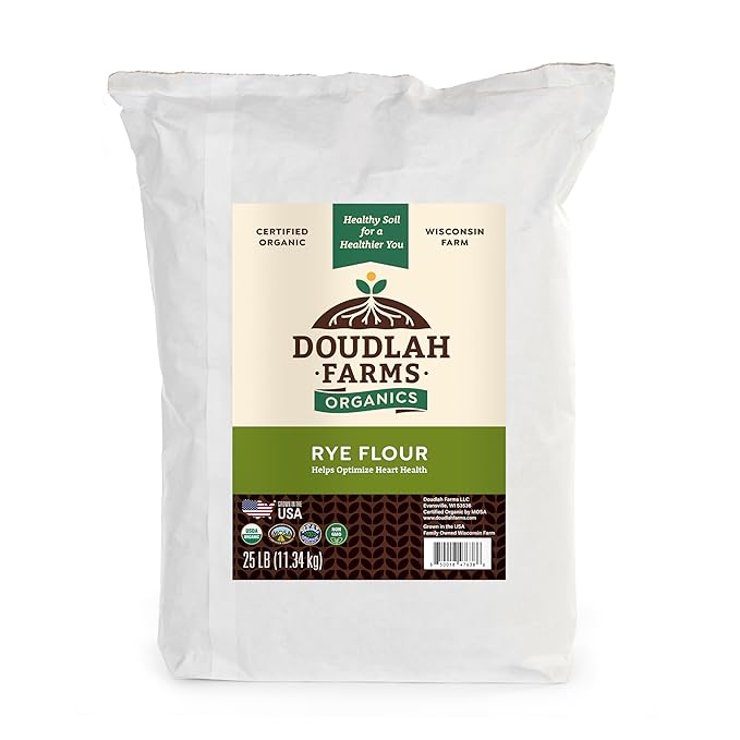 Organic Rye Flour 25 lb Bulk - Non-GMO, USDA Organic, Low Gluten, Vegan, For Baking, Cooking, Supports Heart Health & Digestion - USA Grown by Doudlah Farms