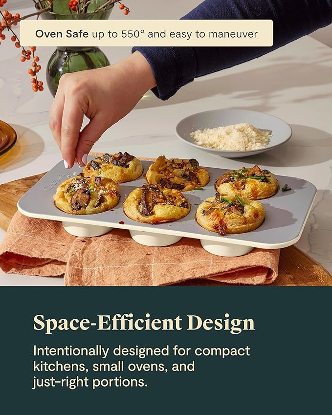 - PERFECT FOR SMALL BATCHES: Designed for portion control, this 6 cup muffin pan is ideal for baking muffins, cupcakes, egg bites, and more. Its compact size allows for small-batch baking in compact kitchens.