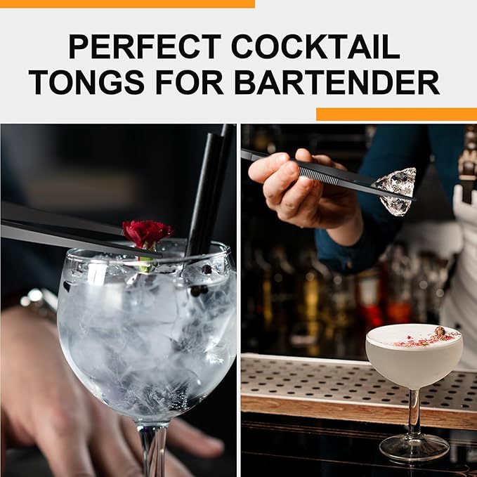 Yaomiao 4 Packs 8 Inch Bar Tweezers Black Long Garnish Tongs Stainless Steel Kitchen Cooking Tongs Tweezers for Food Cocktail Korean BBQ Bartender Chef, Multi-use