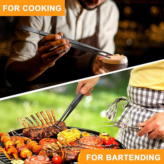 - Multipurpose tweezers: the black steel tweezer measures about 8 inch/ 20 cm, this stainless steel cookware is great along with other kitchen supplies, also good for culinary, beauty, electrical repairing, purpose and crafting