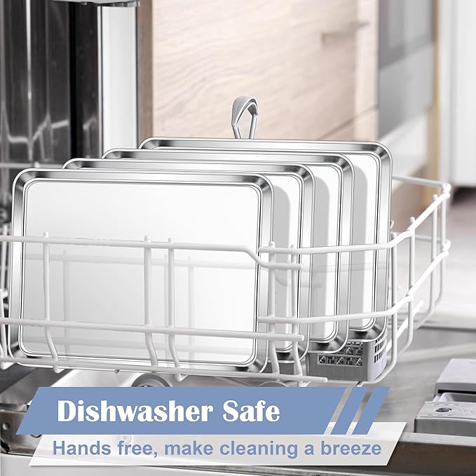 E-far Stainless Steel Baking Sheets Set of 4, 12.4” x9.7” Baking Cookie Sheets Pans for Oven, Non-toxic Metal Trays for Cake Cookies, Healthy & Rust Free, Mirror Finish & Dishwasher Safe