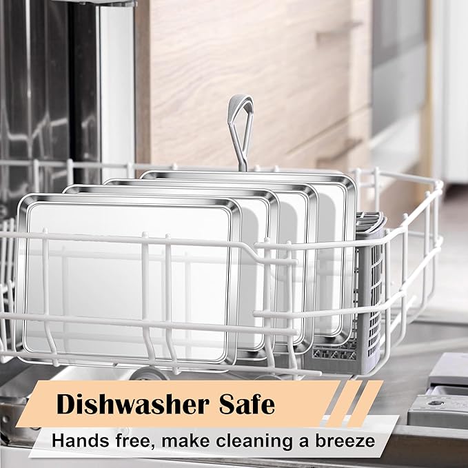- DURABLE & WARP FREE: One-piece metal structure with a mirror finish enhance hardness, wear resistance and rust protection, Thick rimmed edges prevent warping to ensure durability for long-lasting use, Toaster oven/air fryer/dishwasher/freeze safe