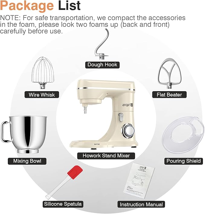 - 【IDEAL Present and Best Services】 A perfect present idea for your family and friends. All Mini Angel products include 24/7 customer service and lifetime technical support. P.S: For safe transportation,dough hook is packed on the other side of the foam.