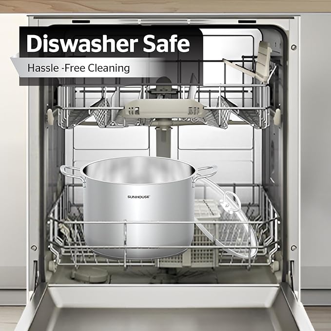 - [Easy to Clean & Dishwasher Safe] – This 12-quart stainless steel induction stockpot is dishwasher safe, making cleanup quick and hassle-free. Its durable construction ensures long-term use while maintaining a sleek, polished finish.