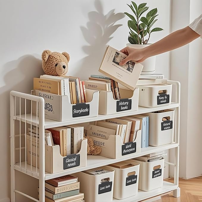 - HOME RUNNER for HOME ORGANIZATION: Our 8 PACK storage bins labels can be used in your Kitchen, Pantry, Laundry Room, closets and cabinets, etc. Clips onto MOST of storage bins and baskets, and boxes. When your home and life are more organized, it creates more time for the people and activities you love the most!