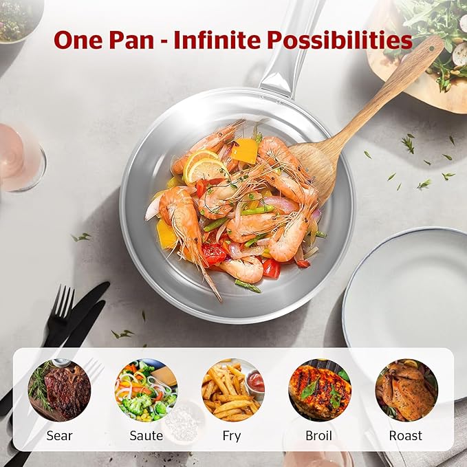 Sunhouse 18/10 9 Inch Stainless Steel Frying Pan, Whole-Clad No Coatings Skillet with Stay-cool Handle for Cooking, Durable & Oven Safe to 500°F, Dishwasher Safe, Compatible with All Cooktops
