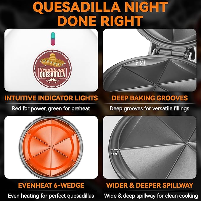 - [Enhanced Satisfaction]: Boasting deeper grill cavities, this appliance empowers you to indulge in quesadillas filled to the brim with your preferred ingredients, elevating your culinary experience to new heights of satisfaction.