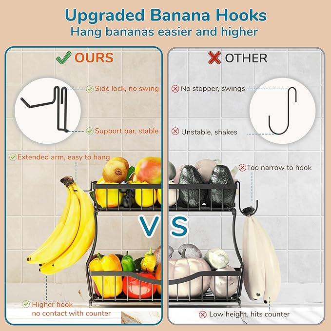 - Banana Hangers: Includes two detachable banana hooks for natural, organized hanging