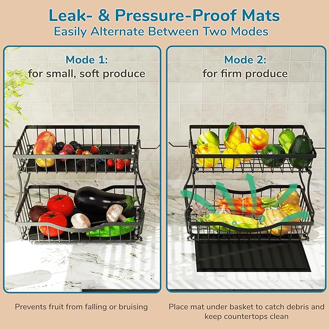 - Removable Mats: Easily alternate between the leak-proof mats or open ventilation, perfect for fruit and vegetable organizer