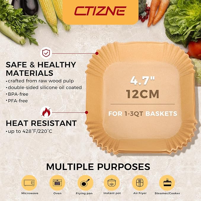 Air Fryer Liners Disposable - 100Pcs 4.7In Square Parchment Paper for Air Fryer, Non-Stick Oilproof Baking Paper Sheets for 1-3 QT Airfryer Basket
