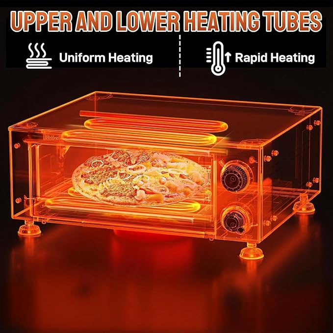 - Efficient Pizza Maker: This electric pizza oven countertop can accommodate up to a 12 inch pizza in diameter. With its dual up-and-down balanced heating and 360° rotary heating system, it cooks pizzas evenly in minutes, delivering crispy crusts and perfectly melted cheese every time.