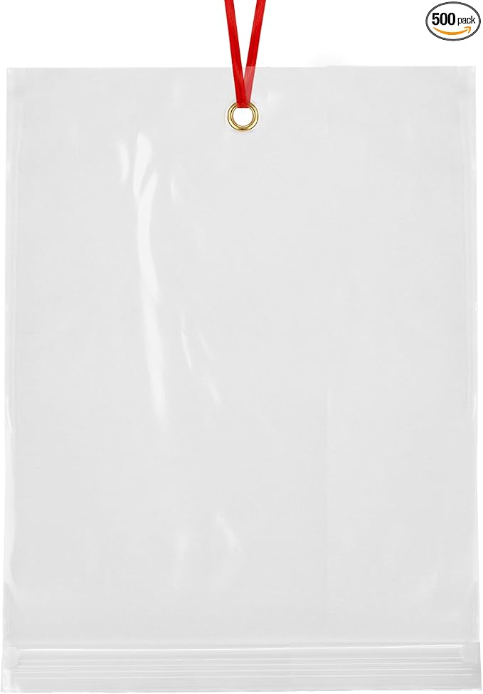 GPI - 10" x 13" Reclosable Zip Bags with Bottom Hang-hole & Pre-inserted 12" Twist-tie. 4 Mil Heavy-duty Resealable Zipper Baggy with Grommet/Metal Eyelet for Hanging (Insert Size 10x11.5) 500 Pack