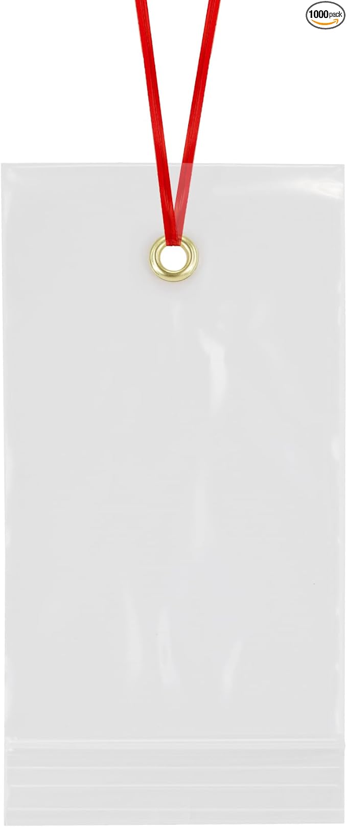 GPI - 3.5" x 6" Reclosable Zip Bags with Bottom Hang-hole & Pre-inserted 12" Twist-tie. 4 Mil Heavy-duty Resealable Zipper Baggy with Grommet/Metal Eyelet for Hanging (Insert Size 3x4.5) 1000 Pack