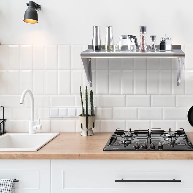 - DURABLE AND EASY TO MAINTAIN: Featuring a brushed finish that resists daily scratches, corrosion, and dullness, our steel shelf remains visually appealing and functional even with regular use and spills.