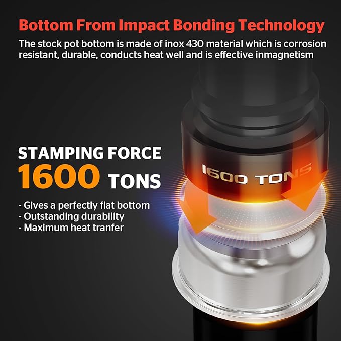 - [Heat Distribution] - Our stainless stock pot is carefully crafted with 3-ply base, so you can cook your meals perfectly with the optimal degree of effective heat distribution. Whether you’re simmering, boiling, or stewing, you can trust that this stock pot is the perfect tool for you.