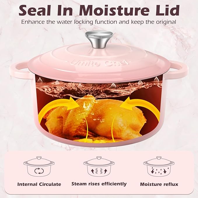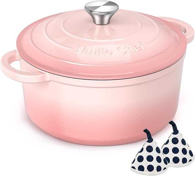 Umite Chef 5QT Enameled Cast Iron Dutch Oven Pot with Lid, Heavy-Duty Cookware for Bread Baking, Braising, Stews, Roasting, Wedding Registry Ideas & Gifts (Pink)
