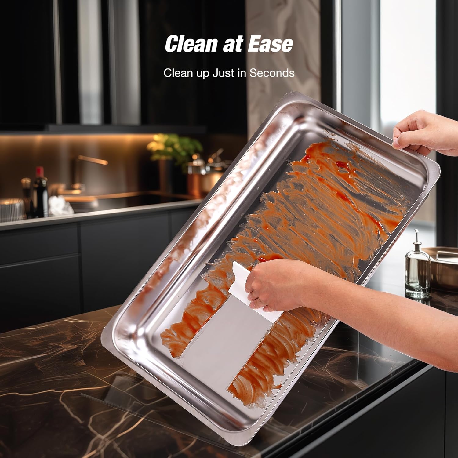 - CRAFTED WITH CARE, PRIORITIZE SAFETY: The luxury chafing dish buffet set are made of thickened food-grade 430 stainless steel, which ensures safer use and is less prone to rusting. The edges of both the water pan and food pan are meticulously hemmed, resulting in smoother edges, and minimizing accidental cuts