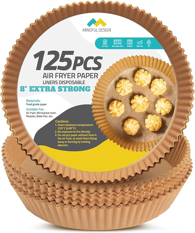 - Customized Convenience: Each pack includes 125 pre-cut 8 inch round liners, eliminating the hassle of trimming or folding to fit your air fryer. Enjoy the convenience of perfectly sized liners every time.
