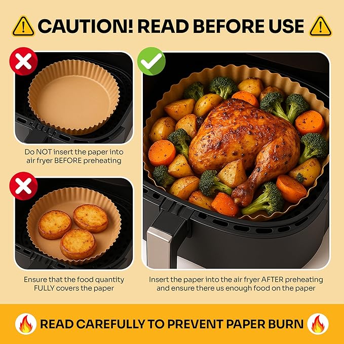 - Easy Cleanup: No more scrubbing or soaking your air fryer basket. Our non-stick parchment paper liners make cleanup a breeze, saving you time and effort after every cooking session.