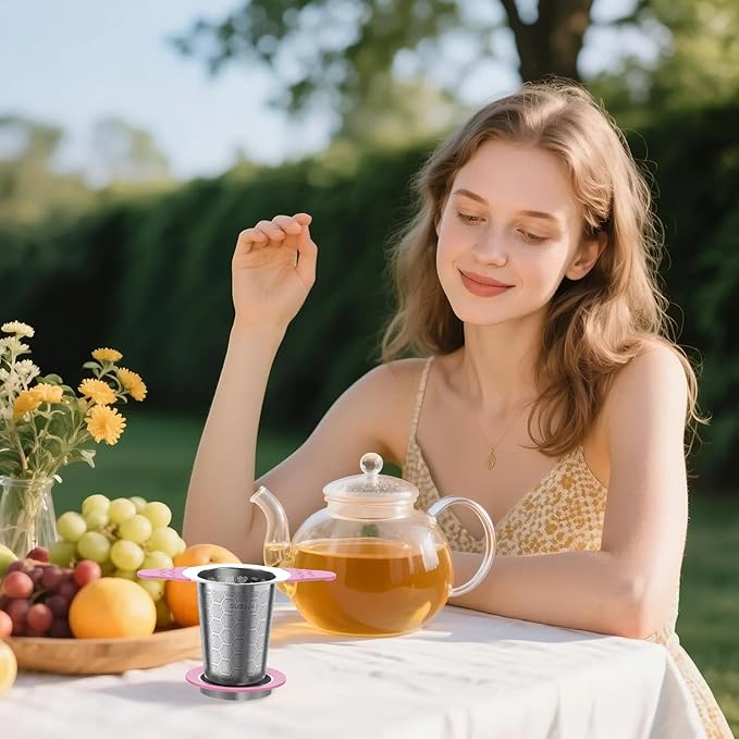 - Multipurpose Lid:The silicone lid of stainless steel tea steeper for loose tea can retain heat.When removing the loose tea leaf steeper,the silicone lid can be a drip tray to catch water so as not to wet the desktop.