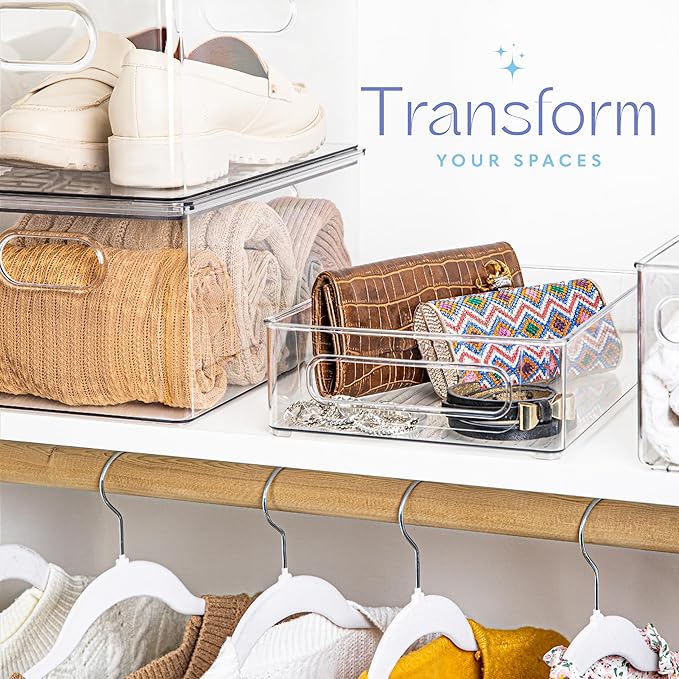 - Easy Visibility and Convenient Handles: The clear plastic design allows you to quickly see and access your stored items without any hassle. Built in grip handles provide a secure and comfortable hold, making it easy to pull out the bin and grab what you need. The open top design adds conveniece, perfect for busy families, organizers and anyone looking to organize their space.
