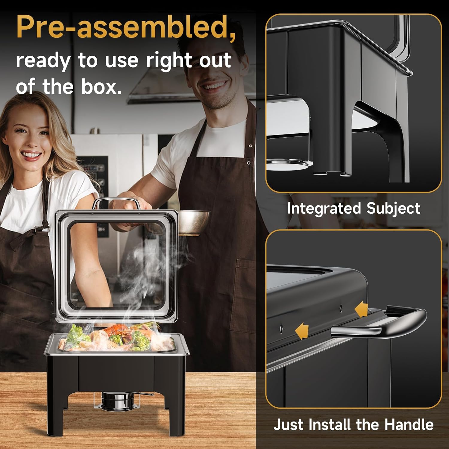 Chafing Dishes for Buffet, 6QT Square Stainless Steel Chafing Dish with Transparent Hydraulic Lid, 304 Food Pan, Buffet Warmer for Parties and Events (Black)