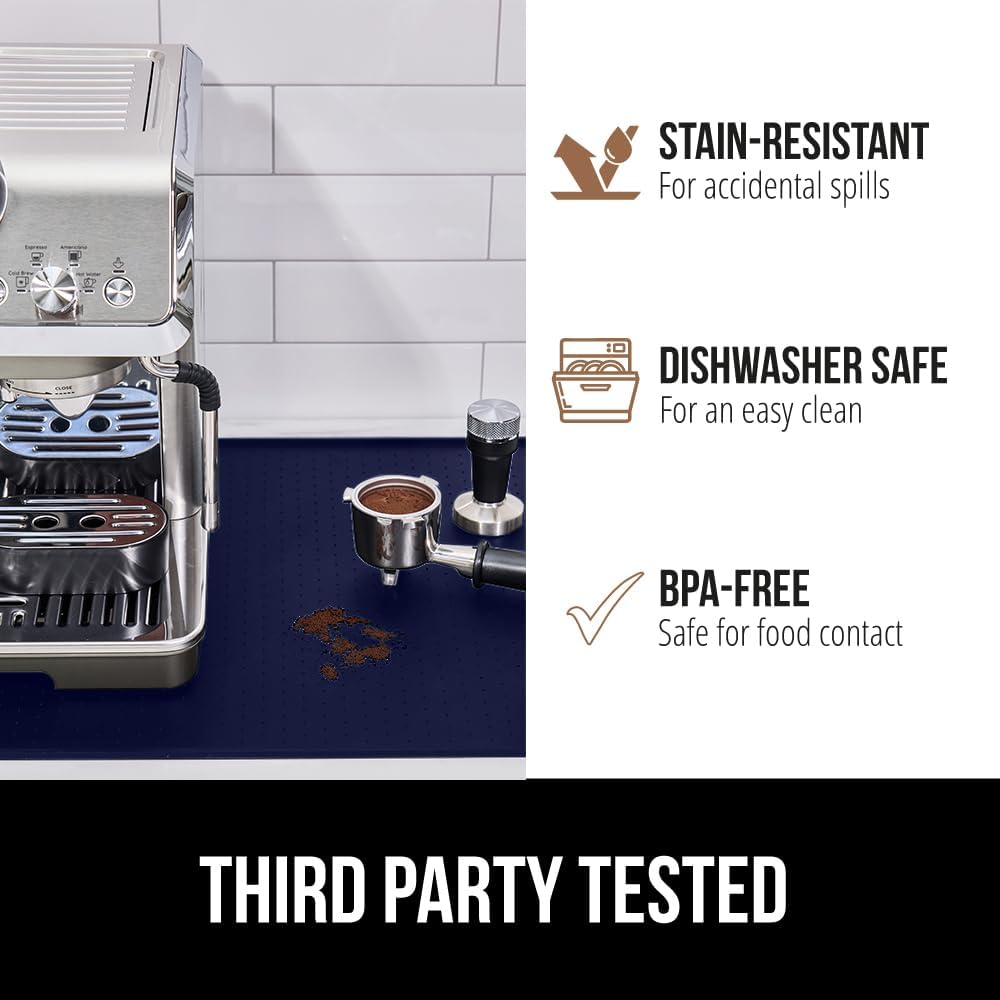 GORILLA GRIP Silicone Coffee Mat, Espresso Drink Bar Station Accessories, Waterproof Heat-Resistant Dish Drying Mats, Stay in Place on Kitchen Counter, Home Kitchen Decor Essentials, 11.5x18.5, Navy