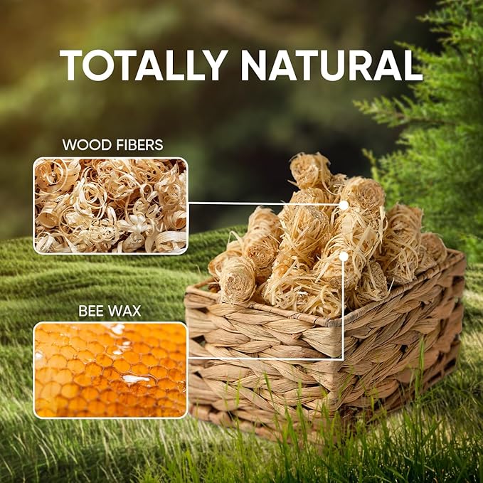 - Natural Formula: only wood shavings and high-quality Dutch food grade wax are found in our natural fire starters. And since they’re made of natural materials, beeswax fire starter is safe and leaves no odor or impact on food.