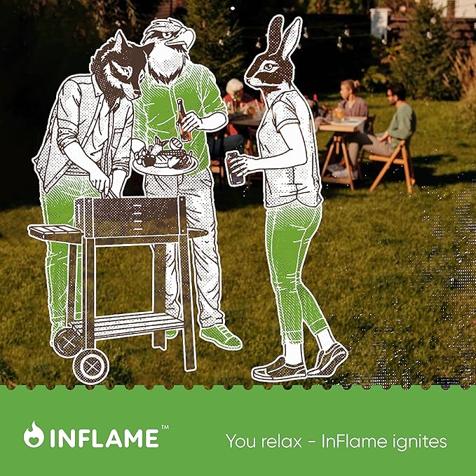 - Easy Fire: Take one or two Inflame firestarter from the box. Place starter under the wood or charcoal, and light each firestarter on the side of the piece.