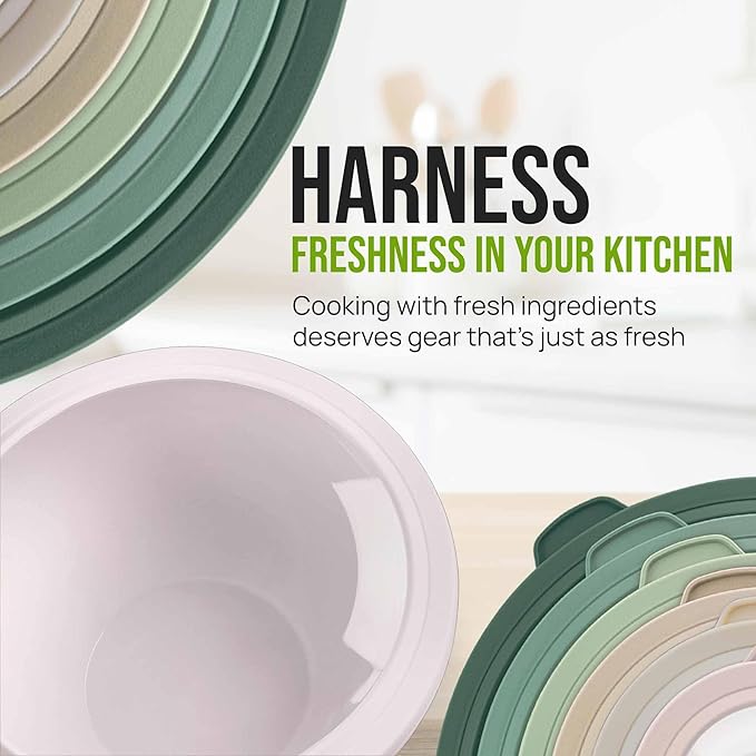 Zulay Kitchen 12 Piece Plastic Mixing Bowls with Leak-Proof Lids Set - Microwave and Freezer Safe Kitchen Mixing Bowls for Preparing, Serving and Storing - Large Nesting Bowls (Forest Ombre)