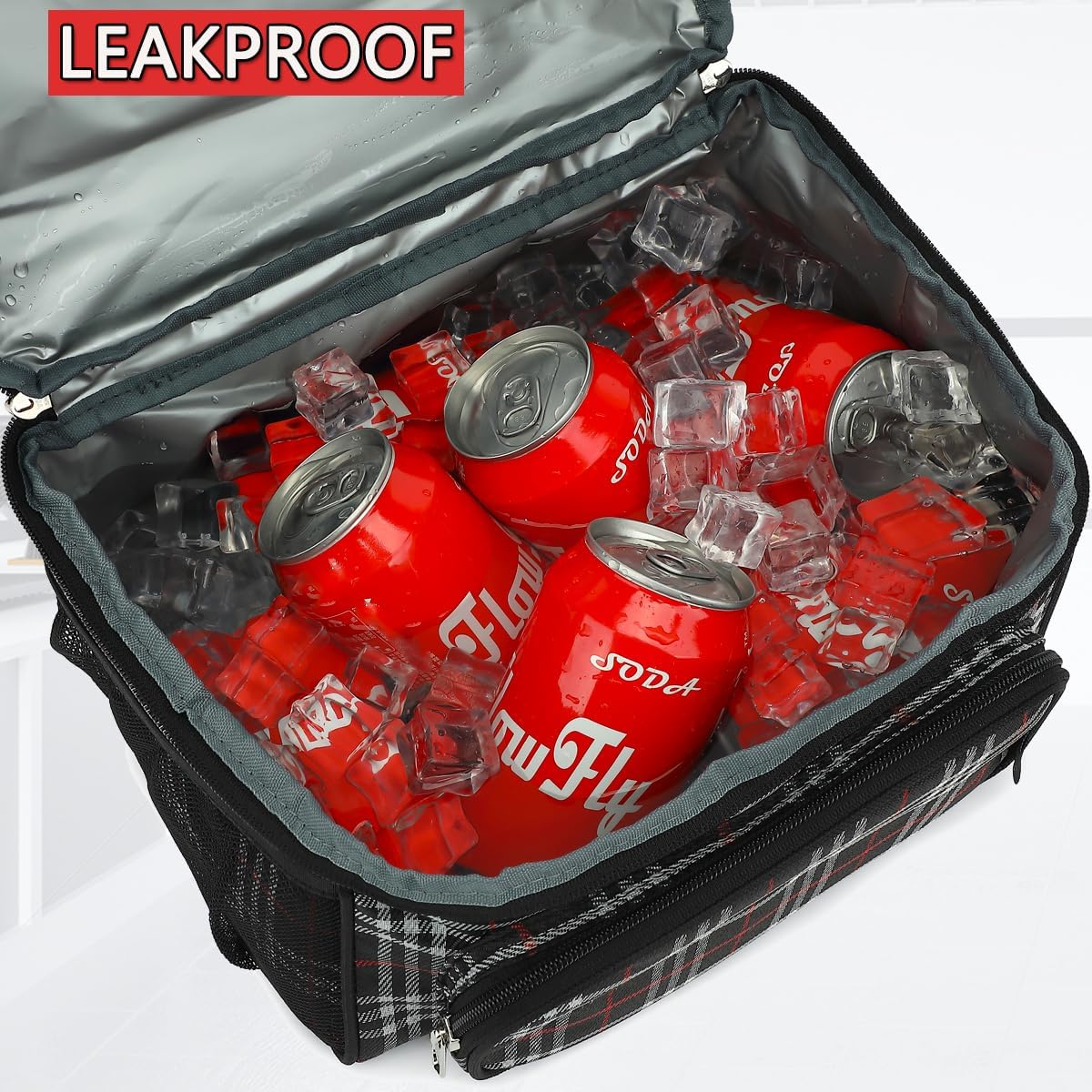FlowFly Double Layer Cooler Insulated Lunch Bag Adult Lunch Box Large Tote Bag for Men, Women, With Adjustable Strap,Front Pocket and Dual Large Mesh Side Pockets