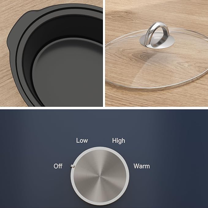 - Enhanced Safety: Crafted with anti-slip feet on the base, ensuring secure placement of the 3qt slow cooker on tabletops. The lid and pot feature cool-touch handles for easy lifting and added safety against scalding, allowing for comfortable handling of hot dishes and ensuring a safe and enjoyable cooking experience.