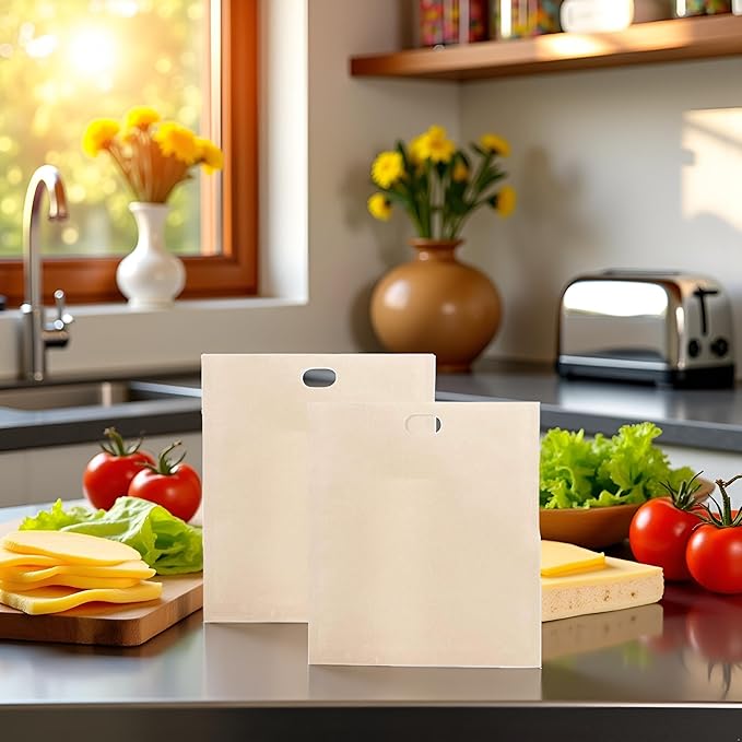 - REUSABLE DESIGN: Set of 2 toaster bags measuring 6.3 x 7.1 inches, perfect for making grilled cheese sandwiches and other toasted treats multiple times
