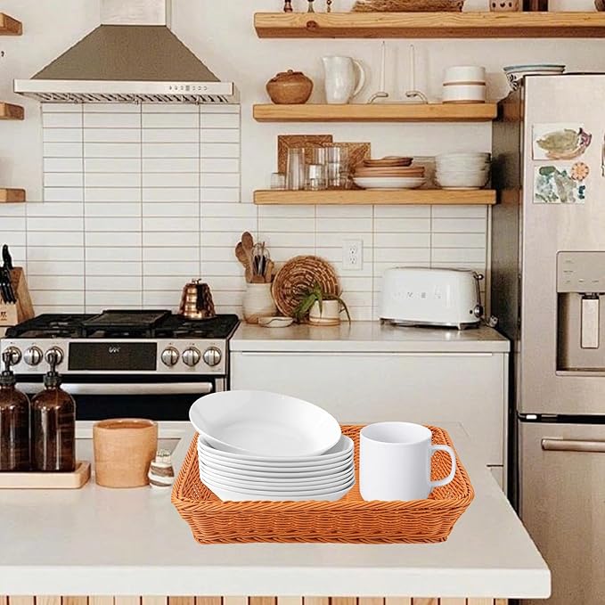 - 【Versatile Uses for Home and More】 These wicker bread basket are incredibly versatile and can be used for storage, organization, or as decorative pieces. They are perfect for holding blankets, toys, magazines, or even as planters. Additionally, their spacious interior makes them ideal for storing fruits, bread, snacks, and other household items. The brown color adds a natural and elegant touch to any room.