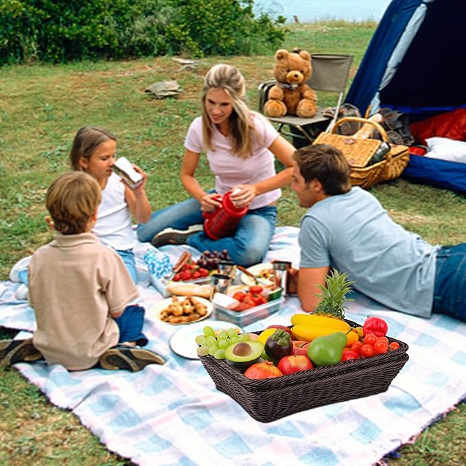 - 【Stylish and Functional】 The Fruit Baskets wicker-look design adds a touch of rustic charm to any room, while the spacious interior ensures practical use. These baskets are perfect for living rooms, bedrooms, kitchens, or even outdoor patios. Their elegant deep coffee color blends seamlessly with any decor style.