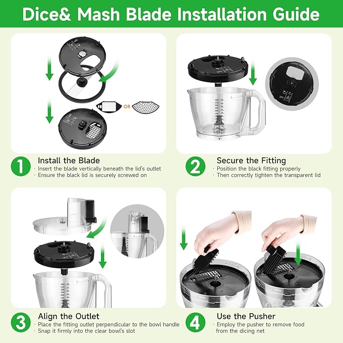 - 🔒 【Safety First + Dishwasher-Safe Cleanup!】The Homtone food processor large only runs when the bowl and lid are locked securely, and the largest pusher's pin is fully inserted into the bowl. And most parts go straight in the dishwasher (just avoid temps over 140°F). Plus, enjoy peace of mind with our 1-Year warranty—we’ve got your back!