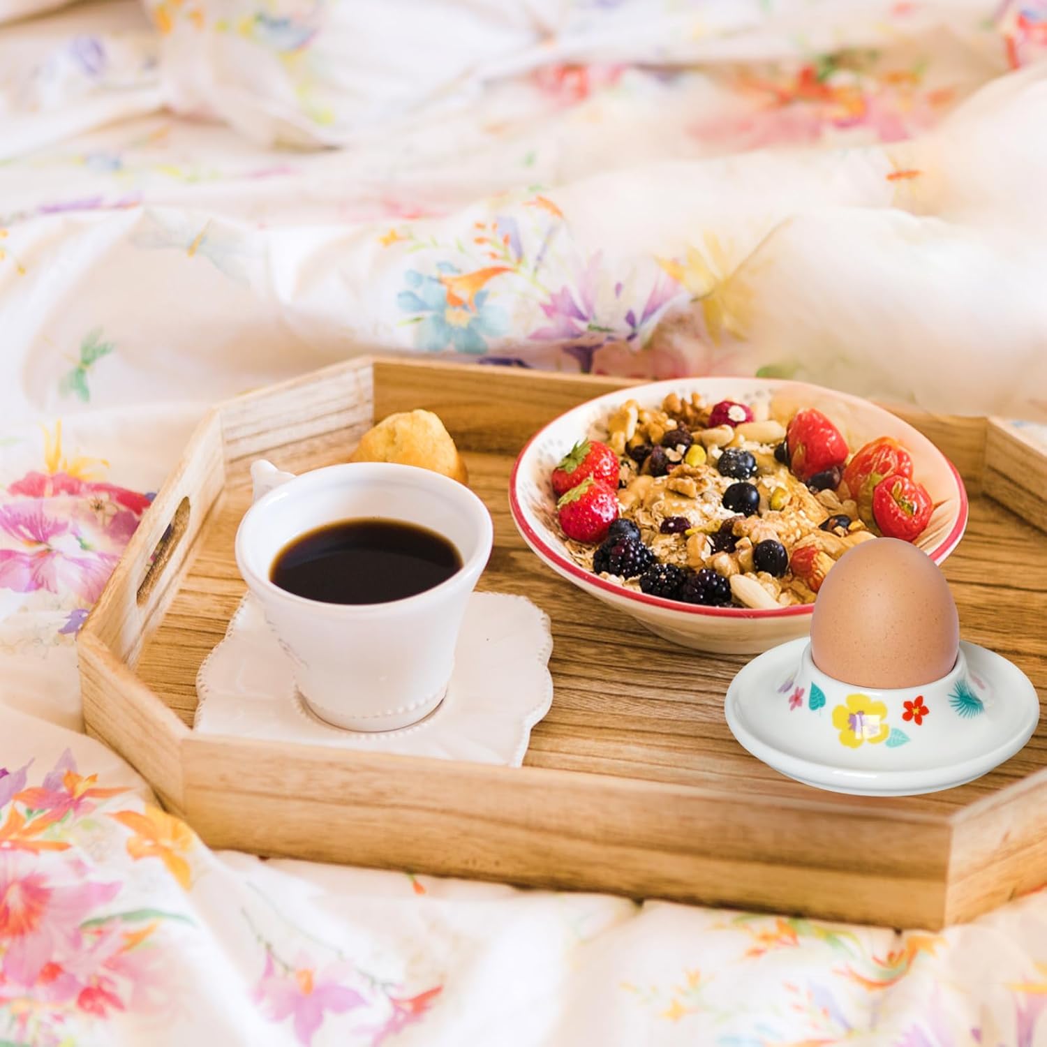Cinf Ceramic Egg Holder Hawaii Flower Set of 2 Porcelain Holder Breakfast Boiled Cooking Easy to Clean Childhood Memories Kitchen