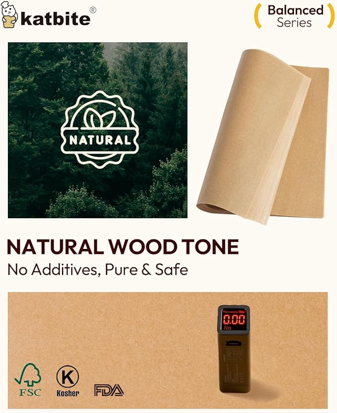 - 100% Natural & Additive-Free: Katbite 8 x 8 Inch Baking Paper is made with FSC-certified wood pulp, unbleached, free of fluorescent agents and harmful chemicals, non-toxic and BPA-free. Naturally presents a healthy wood color. Kosher-certified food-grade safety material, safe for direct food contact—whether baking, roasting, or steaming—allowing you and your family to enjoy meals with peace of mind.