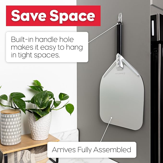- PERFECT SIZE FOR HOME OVENS – Designed for standard ovens and grills with an 11.75" x 12" surface and 22" total length. Thin, tapered edge effortlessly slides under bread, pizza, or flatbreads without tearing dough. Perfect for sourdoughs, pizza nights, and everyday baking.