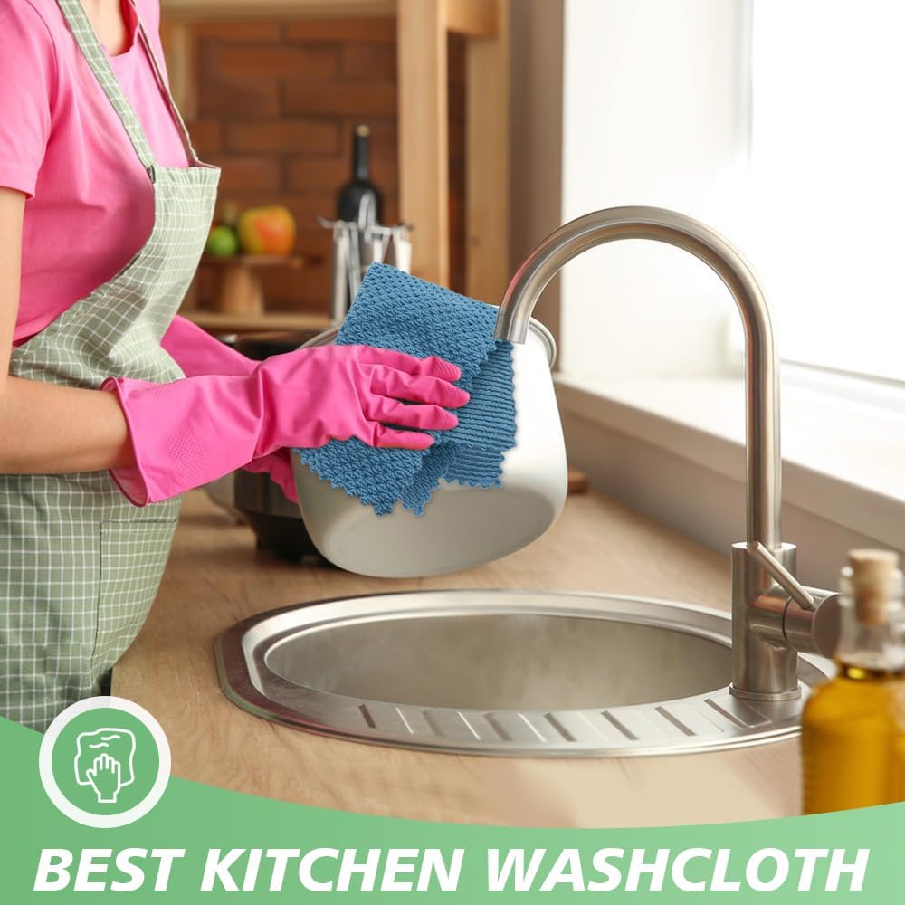 - Highly Absorbent & Soft:These super soft, non-abrasive microfiber cloths can cleans deep, but won't damage delicate surfaces. Using for dusting, scrubbing, polish and drying your entire home. The kitchen wash cloths are lightweight, absorbs water more & faster and dries faster than cotton