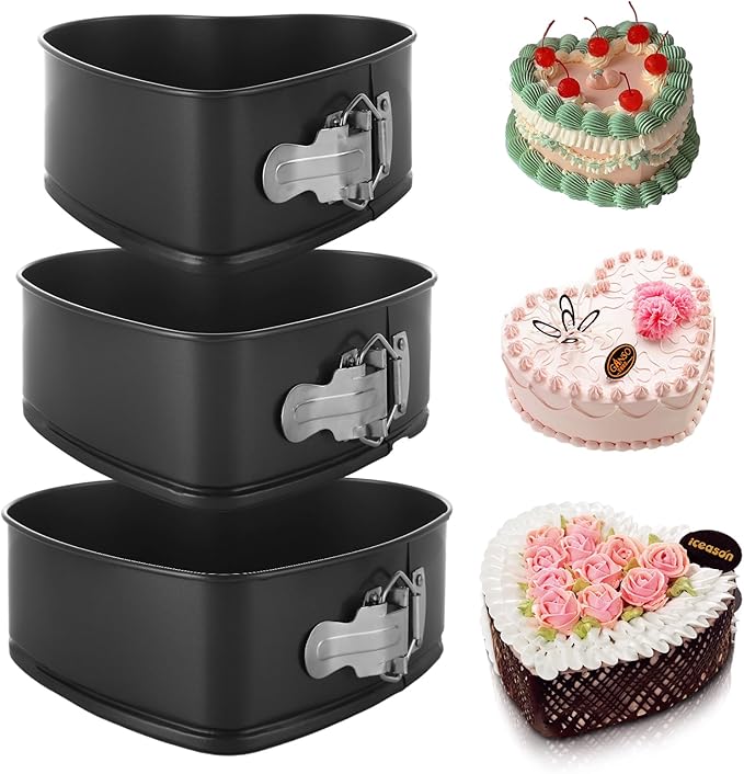 Springform Pan Set of 3 Heart Cake Pan, Heart Springform Pan with Removable Bottom, Springform Cake Pans Non-stick Bakeware for Cheesecakes, Pizza, and Quiches (7, 7.8, 8.6 inch)
